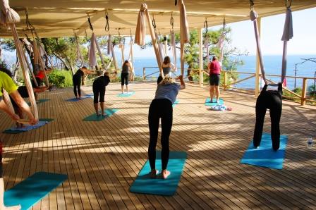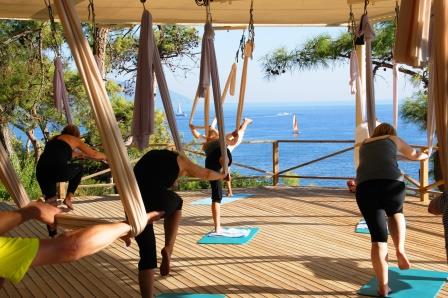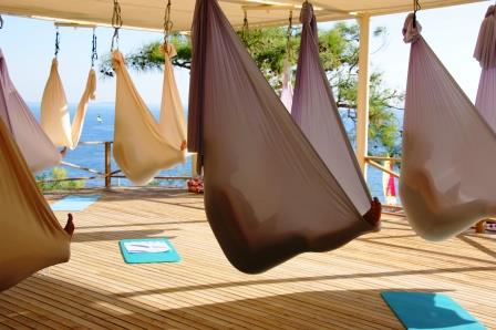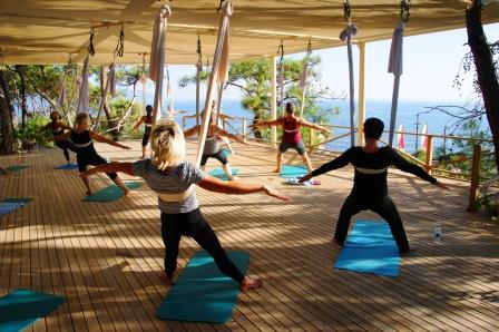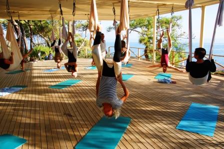 Als erster Robinson Club bietet der Robinson Club Sarigerme Park seinen Clubgästen Aerial Yoga oder Yoga im Tuch an. Auf der Yoga Ebene mit einem herrlichen Blick über den Strand von Sarigerme Park kann man sich hier Yoga in der Luft ansehen und ausprobieren.
